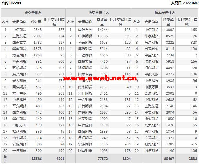 2022年4月7日IC中证500股指期货9月份合约(IC2209)持仓