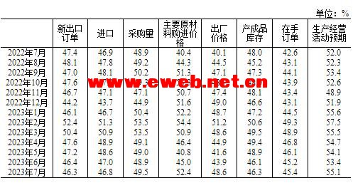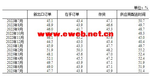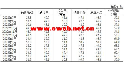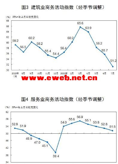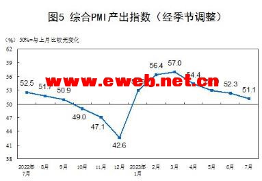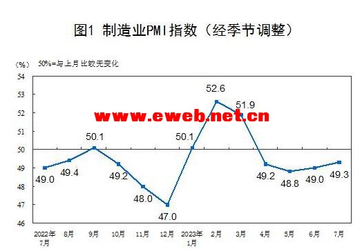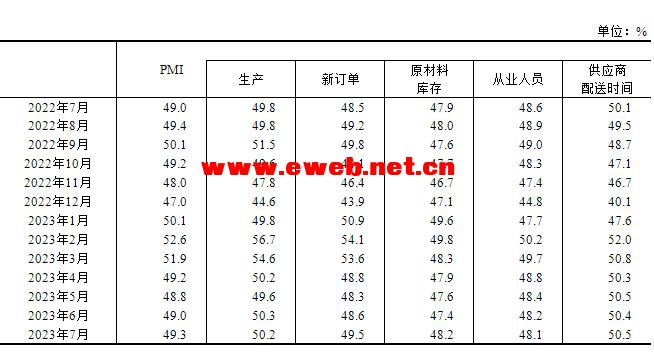 2023年7月制造业采购经理指数(PMI)为49.3% 环比上升0.3个百分点 一、中国制造业采购经理指数运行情况 7月份,制造业采购经理指数(PMI)为49.3%,比上月上升0.3个百分点,制造业景气水平持续改善。 从企业规模看,大型企业PMI为50.3%,与上月持平;中型企业PMI为49.0%,比上月上升0.1个百分点;小型企业PMI为47.4%,比上月上升1.0个百分点。 从分类指数看,在构成制造业PMI的5个分类指数中,生产指数、供应商配送时间指数高于临界点,新订单指数、原材料库存指数和从业人员指数低于临界点。 生产指数为50.2%,比上月下降0.1个百分点,仍高于临界点,表明制造业生产保持扩张。 新订单指数为49.5%,比上月上升0.9个百分点,表明制造业市场需求景气度继续改善。 原材料库存指数为48.2%,比上月上升0.8个百分点,表明制造业主要原材料库存量降幅收窄。 从业人员指数为48.1%,比上月下降0.1个百分点,表明制造业企业用工景气度变化不大。 供应商配送时间指数为50.5%,比上月上升0.1个百分点,表明制造业原材料供应商交货时间持续加快。 表1 中国制造业PMI及构成指数(经季节调整) 表2 中国制造业PMI其他相关指标情况(经季节调整) 二、中国非制造业采购经理指数运行情况 7月份,非制造业商务活动指数为51.5%,比上月下降1.7个百分点,仍高于临界点,非制造业继续保持扩张。 分行业看,建筑业商务活动指数为51.2%,比上月下降4.5个百分点;服务业商务活动指数为51.5%,比上月下降1.3个百分点。从行业看,航空运输、邮政快递、电信广播电视及卫星传输服务、互联网软件及信息技术服务等行业商务活动指数位于60.0%以上高位景气区间;资本市场服务、房地产等行业商务活动指数低于临界点。 新订单指数为48.1%,比上月下降1.4个百分点,表明非制造业市场需求景气度有所下降。分行业看,建筑业新订单指数为46.3%,比上月下降2.4个百分点;服务业新订单指数为48.4%,比上月下降1.2个百分点。 投入品价格指数为50.8%,比上月上升1.8个百分点,表明非制造业企业用于经营活动的投入品价格总体水平上涨。分行业看,建筑业投入品价格指数为50.7%,比上月下降1.1个百分点;服务业投入品价格指数为50.8%,比上月上升2.2个百分点。 销售价格指数为49.7%,比上月上升1.9个百分点,表明非制造业销售价格总体水平降幅收窄。分行业看,建筑业销售价格指数为52.0%,比上月上升0.4个百分点;服务业销售价格指数为49.3%,比上月上升2.1个百分点。 从业人员指数为46.6%,比上月下降0.2个百分点,表明非制造业企业用工景气度略有下降。分行业看,建筑业从业人员指数为45.2%,比上月下降2.0个百分点;服务业从业人员指数为46.8%,比上月上升0.1个百分点。 业务活动预期指数为59.0%,比上月下降1.3个百分点,仍位于较高景气水平,表明非制造业企业对近期市场恢复发展信心稳定。分行业看,建筑业业务活动预期指数为60.5%,比上月上升0.2个百分点;服务业业务活动预期指数为58.7%,比上月下降1.6个百分点。 表3 中国非制造业主要分类指数(经季节调整) 图6 表4 中国非制造业其他分类指数(经季节调整) 三、中国综合PMI产出指数运行情况 7月份,综合PMI产出指数为51.1%,比上月下降1.2个百分点,仍高于临界点,表明我国企业生产经营总体继续保持扩张。 |