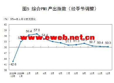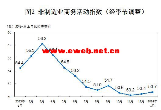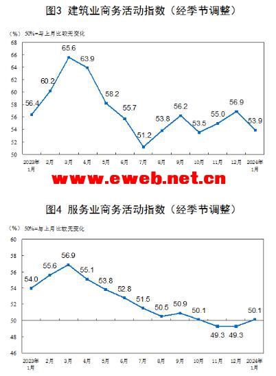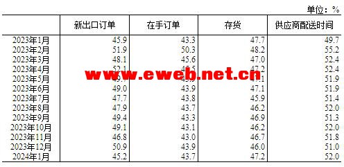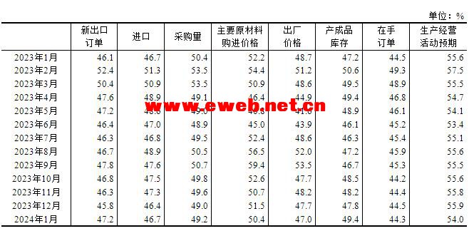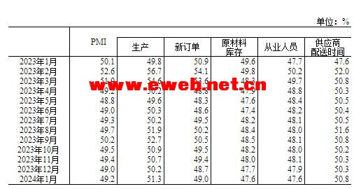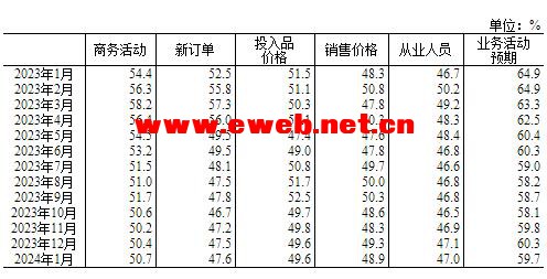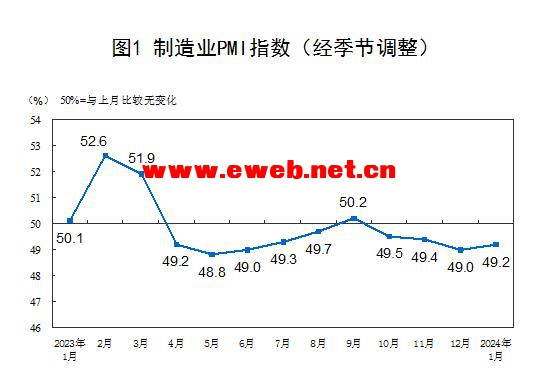 一、中国制造业采购经理指数运行情况 1月份,制造业采购经理指数(PMI)为49.2%,比上月上升0.2个百分点,制造业景气水平有所回升。 从企业规模看,大型企业PMI为50.4%,比上月上升0.4个百分点,高于临界点;中型企业PMI为48.9%,比上月上升0.2个百分点,低于临界点;小型企业PMI为47.2%,比上月下降0.1个百分点,低于临界点。 从分类指数看,在构成制造业PMI的5个分类指数中,生产指数和供应商配送时间指数高于临界点,新订单指数、原材料库存指数和从业人员指数低于临界点。 生产指数为51.3%,比上月上升1.1个百分点,表明制造业生产景气度有所回升。 新订单指数为49.0%,比上月上升0.3个百分点,表明制造业市场需求景气度有所改善。 原材料库存指数为47.6%,比上月下降0.1个百分点,表明制造业主要原材料库存量继续减少。 从业人员指数为47.6%,比上月下降0.3个百分点,表明制造业企业用工景气度下降。 供应商配送时间指数为50.8%,比上月上升0.5个百分点,表明制造业原材料供应商交货时间持续加快。 表1 中国制造业PMI及构成指数(经季节调整) 表2 中国制造业PMI其他相关指标情况(经季节调整) 二、中国非制造业采购经理指数运行情况 1月份,非制造业商务活动指数为50.7%,比上月上升0.3个百分点,高于临界点,表明非制造业延续平稳扩张走势。 分行业看,建筑业商务活动指数为53.9%,比上月下降3.0个百分点;服务业商务活动指数为50.1%,比上月上升0.8个百分点。从行业看,铁路运输、邮政、货币金融服务等行业商务活动指数均位于60.0%及以上高位景气区间;资本市场服务、房地产、生态保护及公共设施管理等行业商务活动指数低于临界点。 新订单指数为47.6%,比上月上升0.1个百分点,表明非制造业市场需求降幅持续收窄。分行业看,建筑业新订单指数为46.7%,比上月下降3.9个百分点;服务业新订单指数为47.7%,比上月上升0.7个百分点。 投入品价格指数为49.6%,与上月持平,仍低于临界点,表明非制造业企业用于经营活动的投入品价格总体水平继续回落。分行业看,建筑业投入品价格指数为52.0%,比上月上升0.6个百分点;服务业投入品价格指数为49.2%,比上月下降0.1个百分点。 销售价格指数为48.9%,比上月下降0.4个百分点,表明非制造业销售价格总体水平有所下降。分行业看,建筑业销售价格指数为50.4%,比上月下降1.3个百分点;服务业销售价格指数为48.7%,比上月下降0.2个百分点。 从业人员指数为47.0%,比上月下降0.1个百分点,表明非制造业企业用工景气度略有回落。分行业看,建筑业从业人员指数为50.1%,比上月下降1.6个百分点;服务业从业人员指数为46.4%,比上月上升0.1个百分点。 业务活动预期指数为59.7%,比上月下降0.6个百分点,仍位于较高景气区间,表明非制造业企业对近期市场发展保持乐观。分行业看,建筑业业务活动预期指数为61.9%,比上月下降3.8个百分点;服务业业务活动预期指数为59.3%,比上月下降0.1个百分点。 表3 中国非制造业主要分类指数(经季节调整) 表4 中国非制造业其他分类指数(经季节调整) 三、中国综合PMI产出指数运行情况 1月份,综合PMI产出指数为50.9%,比上月上升0.6个百分点,继续高于临界点,表明我国企业生产经营活动总体持续扩张。 |