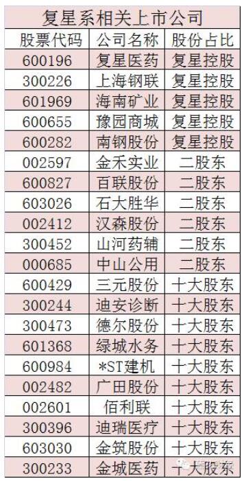 复星系概念股票(复星系概念上市公司,龙头股,受益股)大全